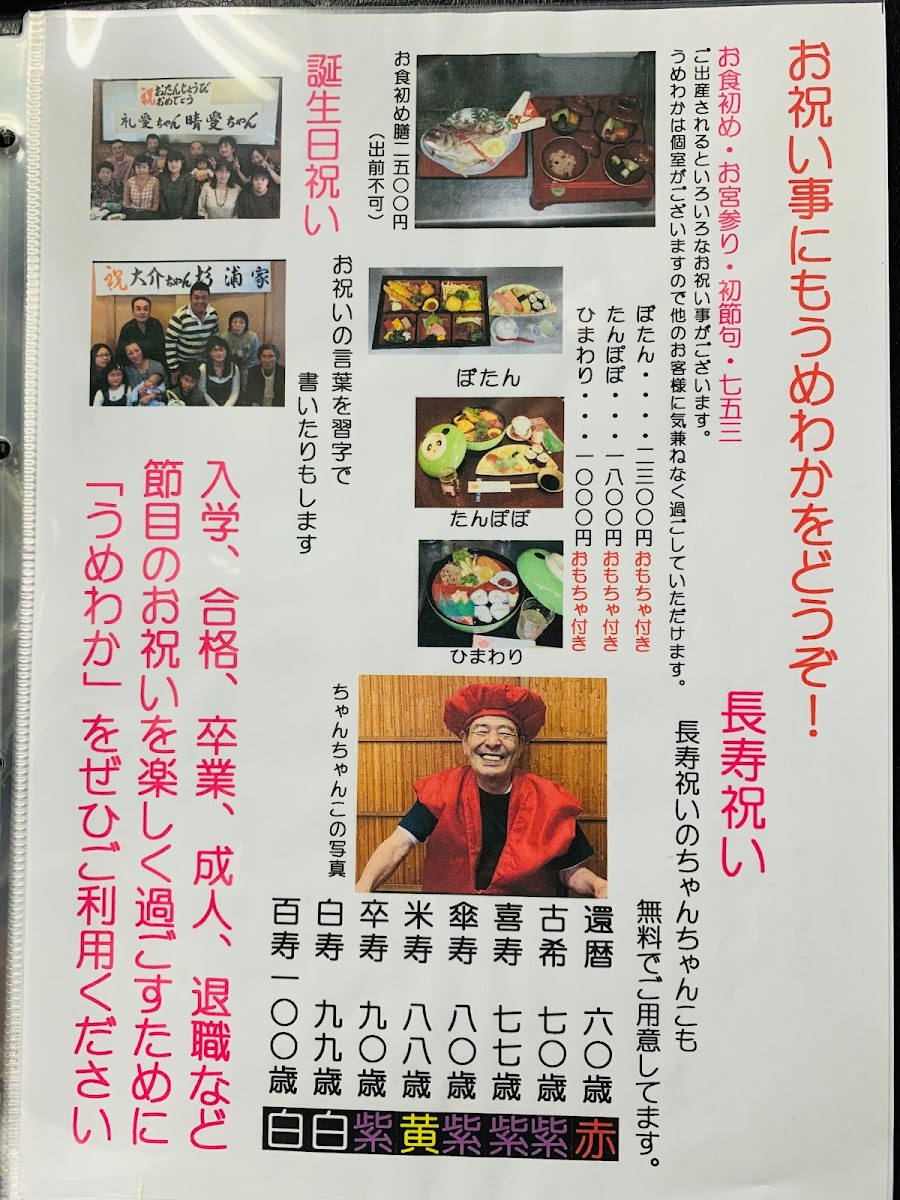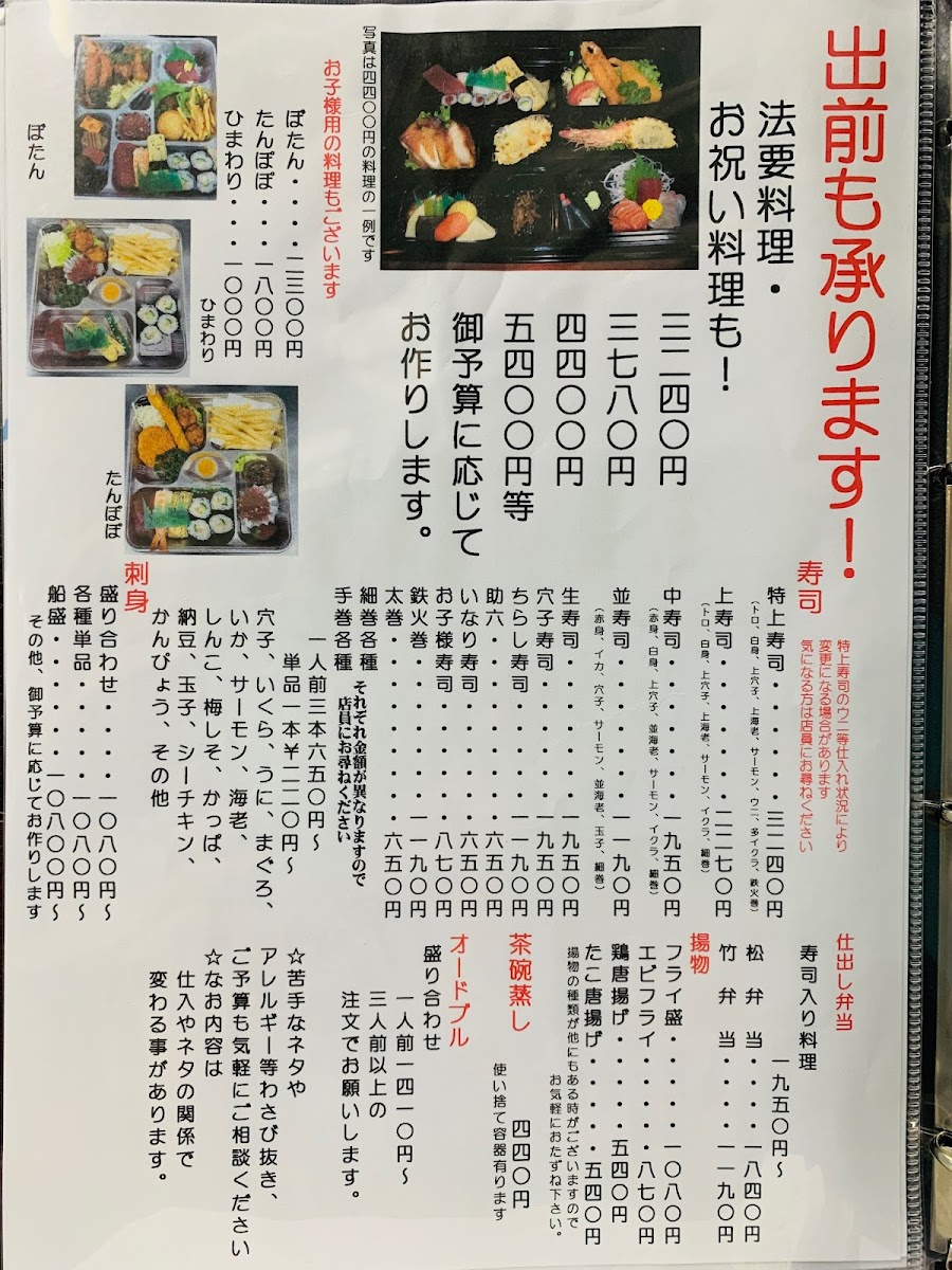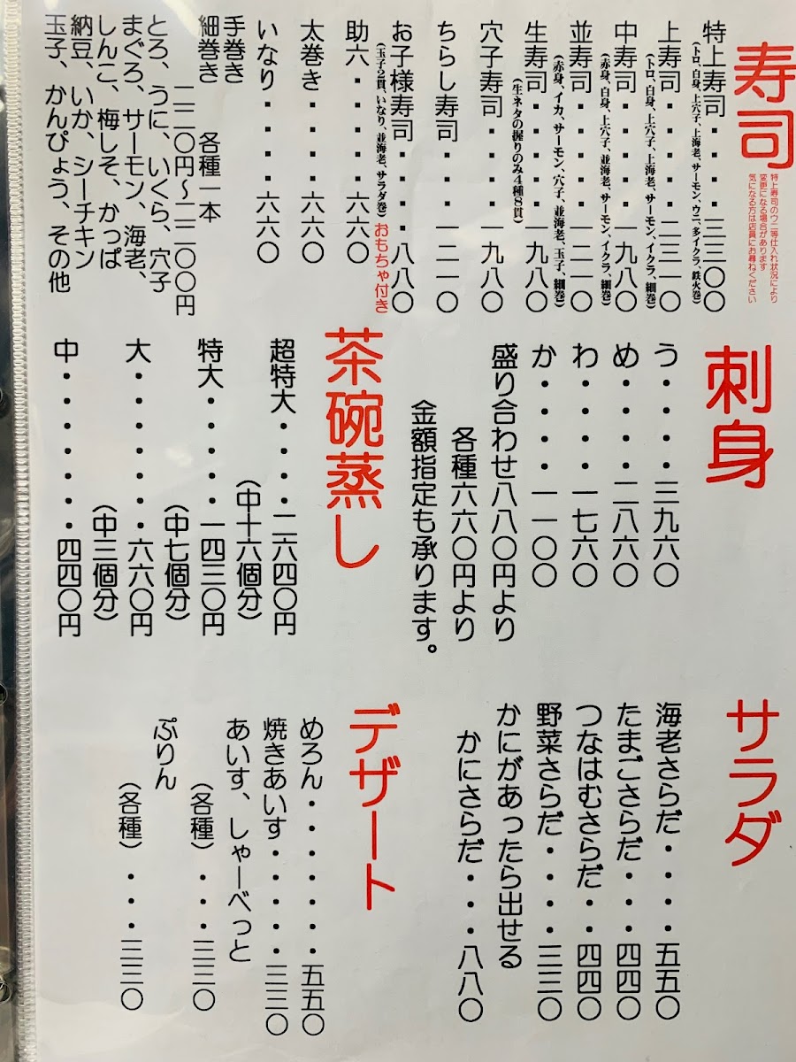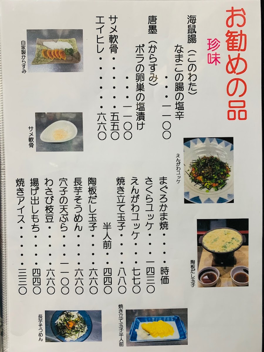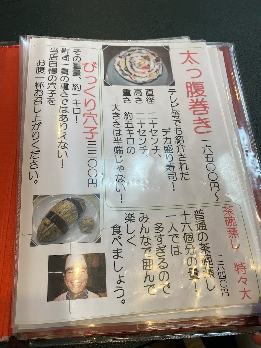 The menu at Umewaka Sushi offers a delightful and diverse range of Japanese dishes, showcasing both traditional and unique creations. A standout item is the びっくり穴子寿司 (Surprise Anago Sushi), a flavorful sushi option that highlights the delicate taste of eel. For those seeking a warm, comforting dish, the 茶碗蒸し (Chawanmushi), a savory egg custard, offers a silky texture and rich taste. Sushi lovers will appreciate the classic お寿司 (Sushi) platter, which includes a selection of fresh and expertly prepared pieces.